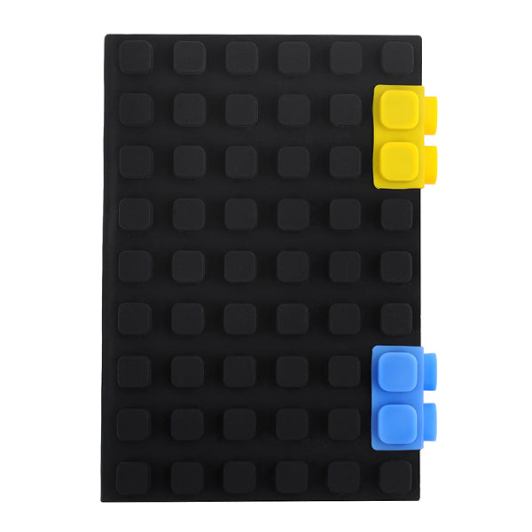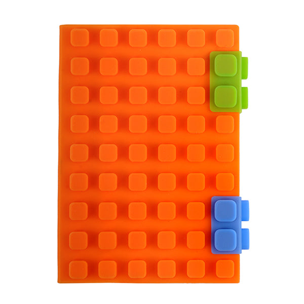 Libreta con suave cubierta de silicona, 190 páginas rayadas de papel de 100 g / m. Su cubierta permite el jugar con los mini blocks para formar palabras, frases o emojis. Incluye 2 clips para usar y combinar en cualquier color. Tambien puede hacerse la aplicacion al interior o en el lomo de la libreta. Tamano de bolsillo ideal para notas y apuntes sencillos